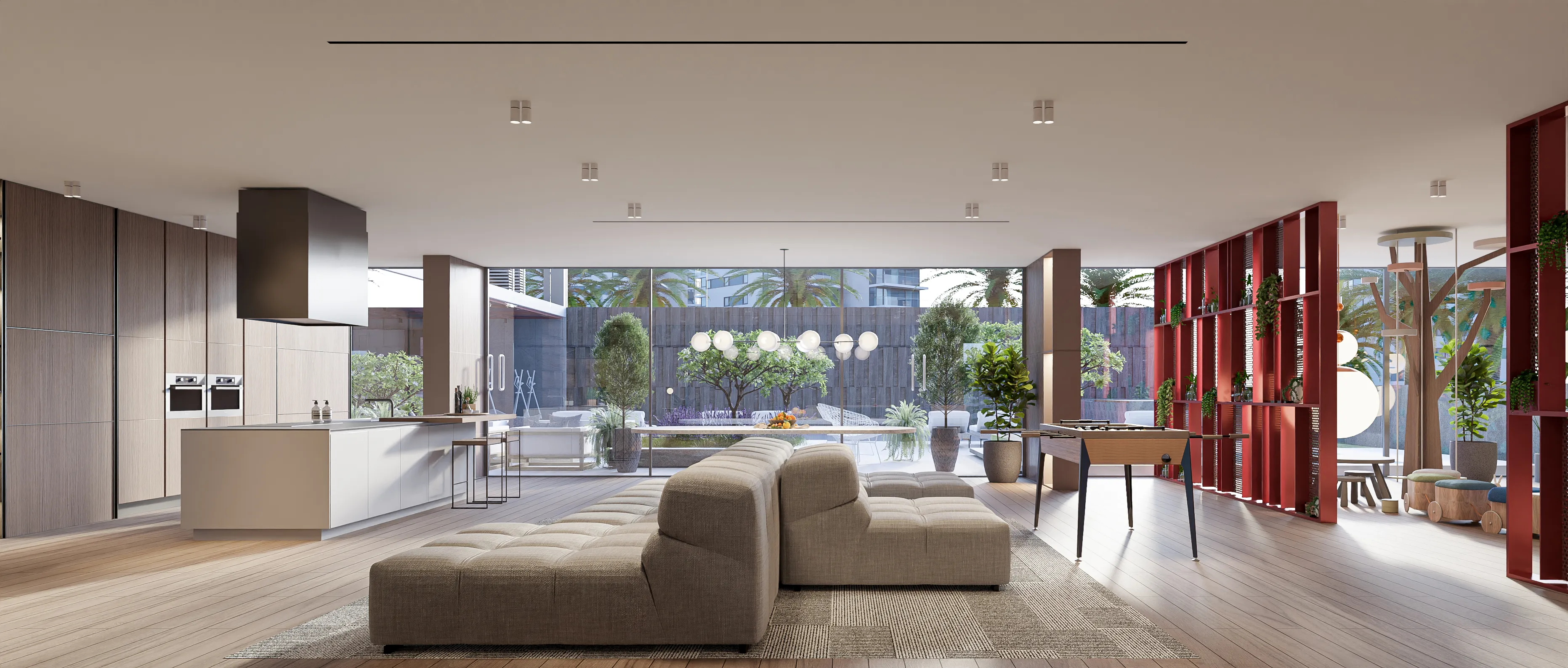 The residences at AB Cavalier range from studios and one-bedroom apartments to exclusive three-bedroom duplexes, some featuring private pools. Interiors are designed in a minimalist contemporary style inspired by natural Nordic aesthetics, with clean lines, warm earthy tones, and refined textures. Open layouts, generous natural light, high ceilings, and carefully selected materials create spaces that feel both elegant and welcoming, offering residents a harmonious blend of functionality, comfort, and understated luxury.