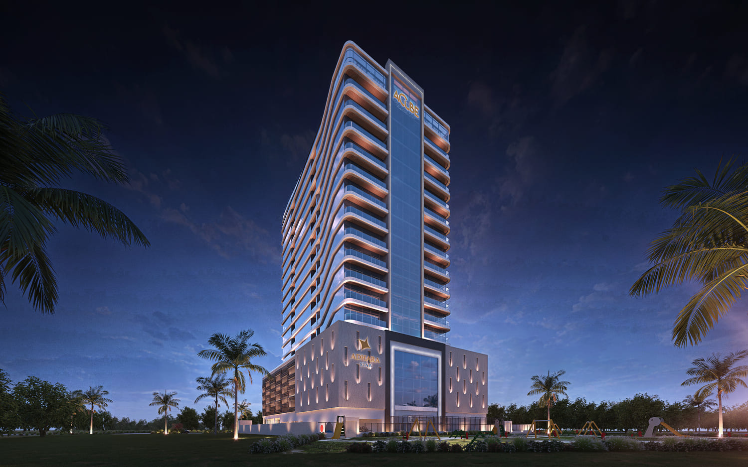 Project general factsAdhara Star in Arjan is a modern and impeccably designed residential and retail project, taking its name from the bright star Adhara located in the northern hemisphere constellation Canis Major. Developed by Acube, a reputable real estate developer, this freehold mixed-use development is set to become a prominent part of Dubai Land's ambitious "Megacity" project.