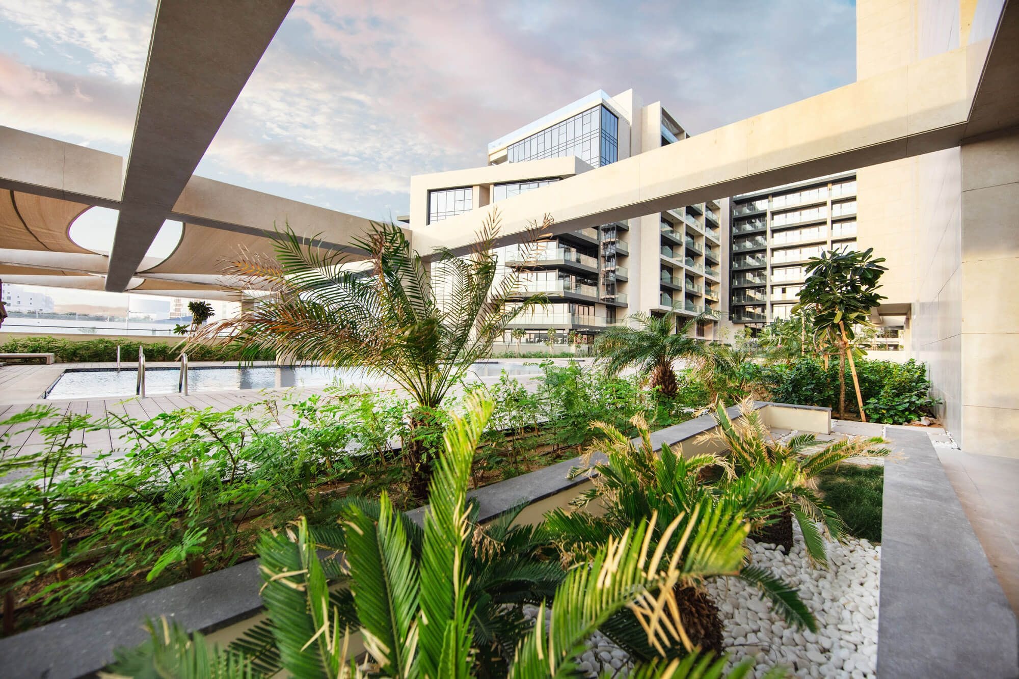 Project general factsSoho square in Saadiyat’s University Neighborhood is a medium rise, mixed – use urban development that encompasses commercial, retail and residential elements. Soho Square embraces the focus of the surrounding landscape by attracting its sense of openness and transparency into its core design. The central courtyard, as a platform elevates the vital sense of local community and public connectivity to interlink the two 10-storey residential blocks. Soho Square is built on the notions of sustainable and vibrant living environments that merge harmoniously to the surrounding urban fabric.