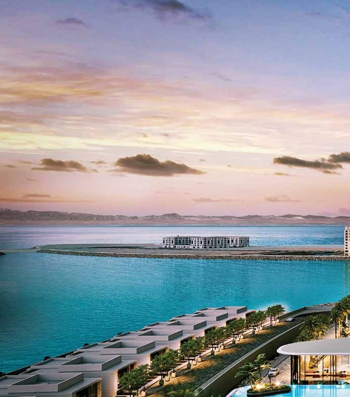 • Experience how Danah Bay is a world of its own with a total area of 86,000 sqm, 40,000 sqm of beaches, and 32,000 sqm of man-made breakwater.