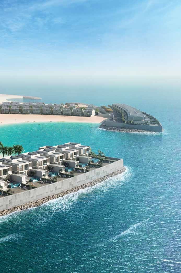 Villas&Townhouses. The interiors make a statement with their open plan living, dining, and kitchen space and the showpiece staircase links the ground level and the first floor with an accent stone wall. Echoing a high-end beach resort inspired feel, the interiors feature modern materials and details. Every detail makes life here extraordinary and carefree. Watch the sunrise from one of the expansive and luxurious 4-bedroom villas with direct beach access or an incredible first-row sea view.