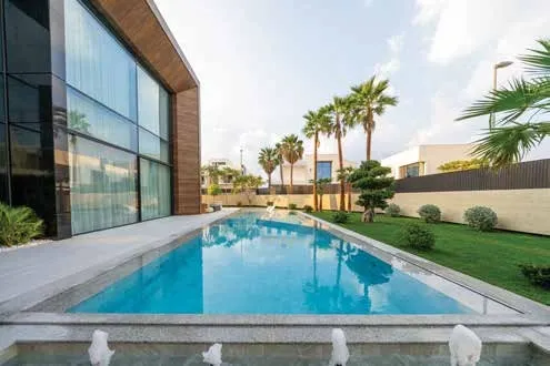 Lifestyle amenities are thoughtfully incorporated throughout the villa to support comfort, wellness, and everyday ease. Landscaped gardens with curated greenery frame the outdoor spaces, while architectural lighting enhances the ambiance after sunset. Wellness features include dedicated spa and fitness areas designed to deliver a private retreat experience, complemented by leisure-focused pool areas and refined outdoor living zones. Vertical mobility within the home is supported by a private elevator, ensuring effortless movement across all levels. Smart home systems further enhance convenience, allowing residents to control lighting, climate, access, and entertainment through integrated automation.