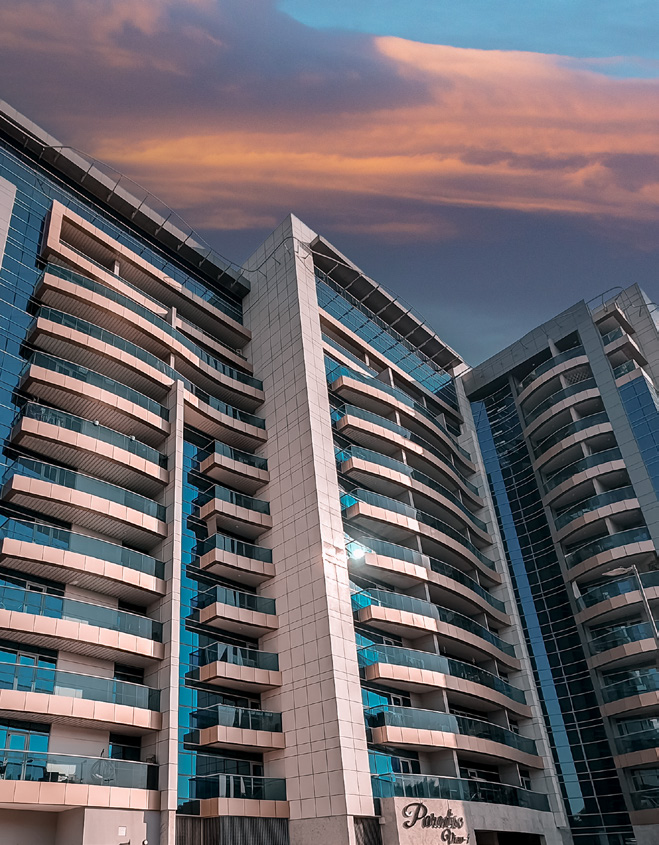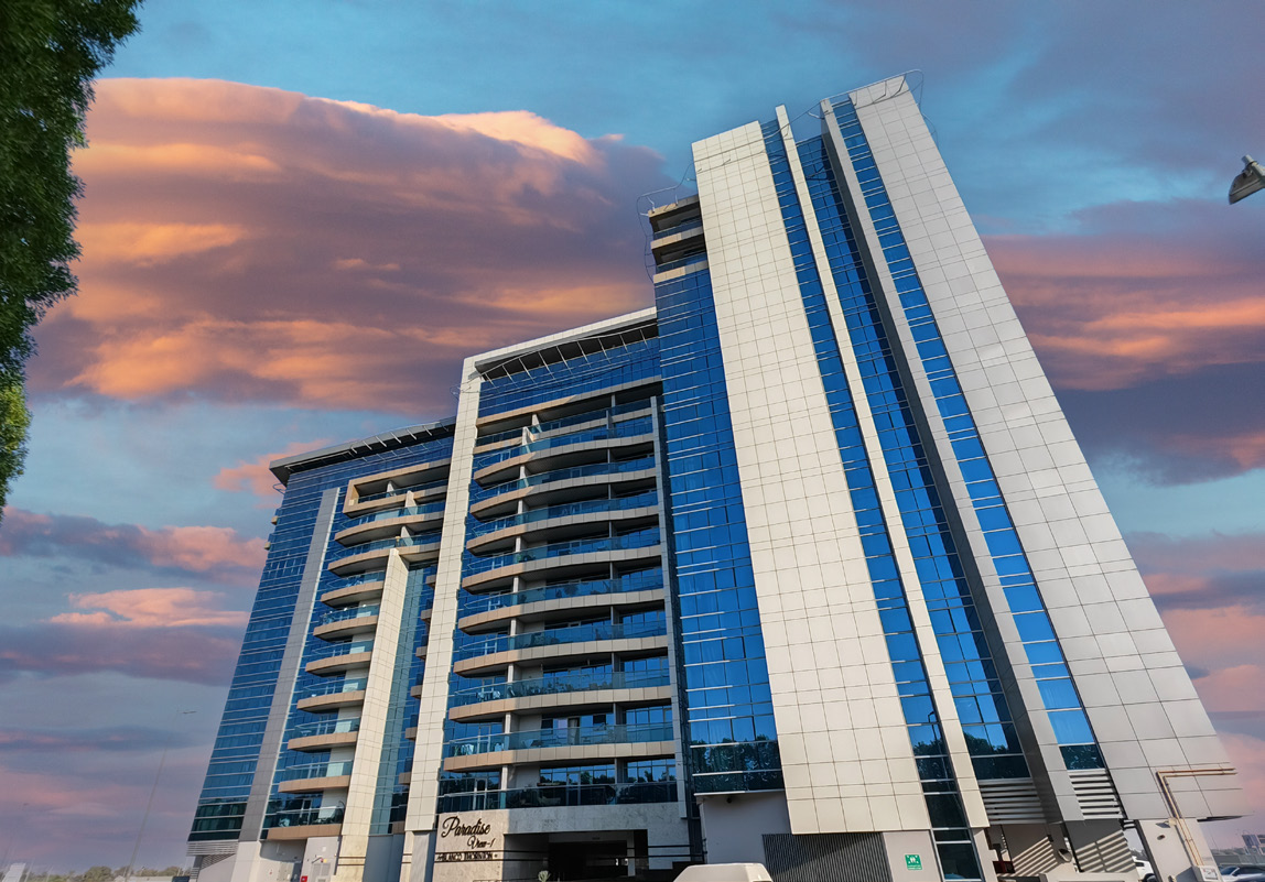 Paradise View 1 offers a collection of studios, one-, two-, and three-bedroom apartments, each designed to optimize the living experience. This mid-rise property presents breathtaking views in every direction, with panoramic sights of the green driveway on one side and the vibrant life within the gated community on the other. With easy accessibility to amenities, residents can relax on spacious balconies, gather with friends by the poolside, or enjoy the city lights.